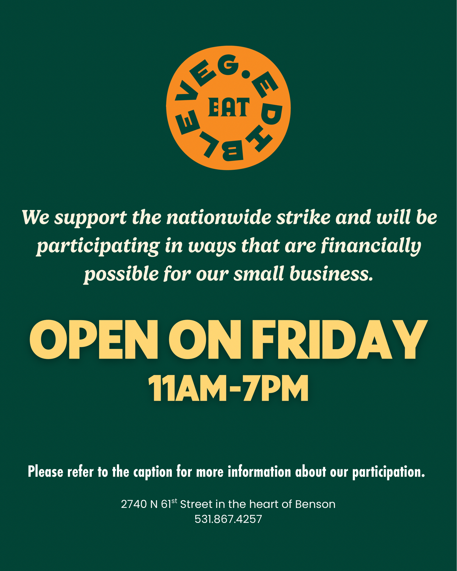 We would love to have the privilege of closing our doors on Friday to participate in the nationwide strike. Full transparency: we simply cannot afford to.