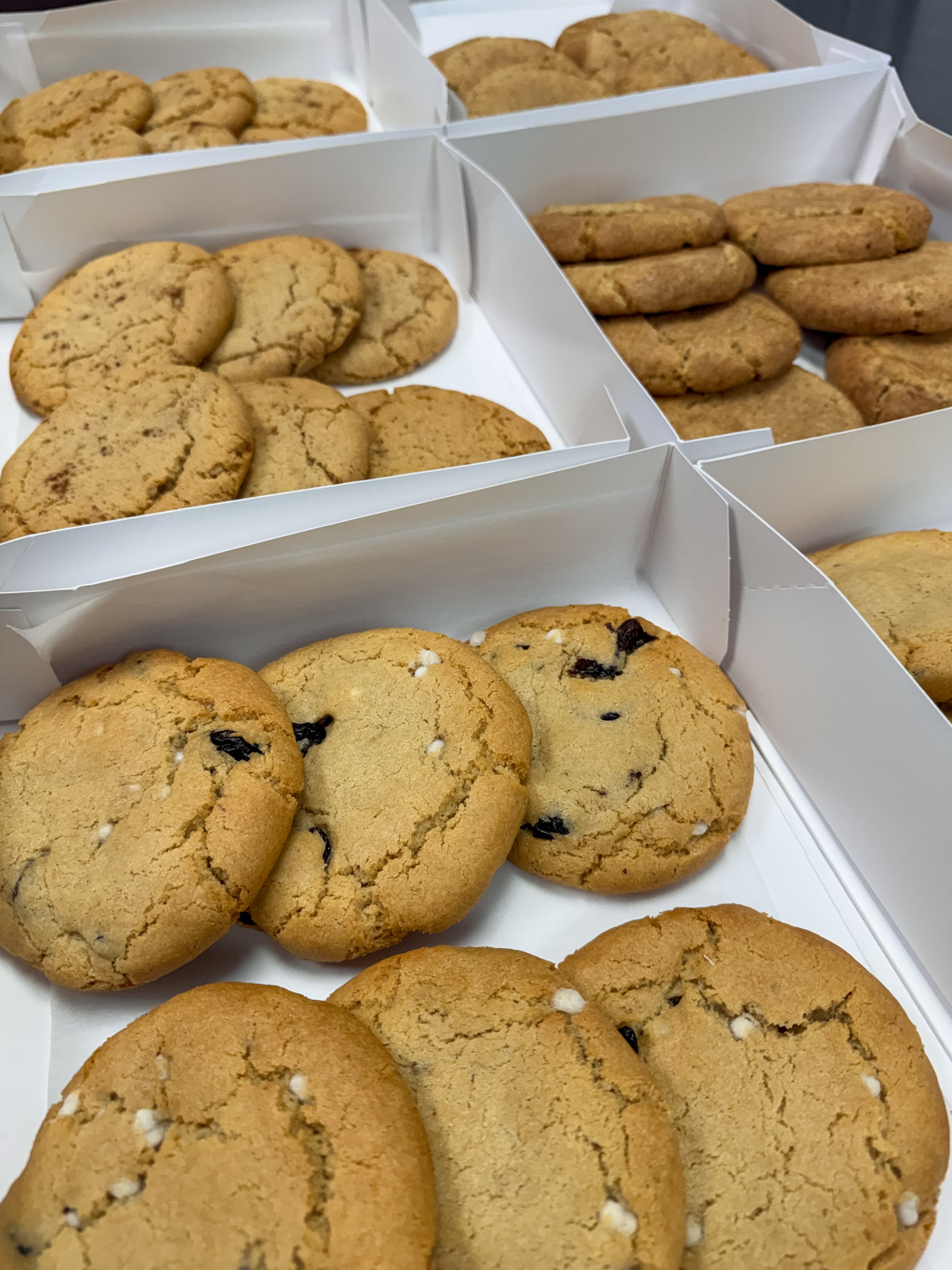 Crunchy outside, soft inside. Always vegan, gluten-free, soy-free and nut-free. Minimum order of 6 cookies, flavors are baker's choice.